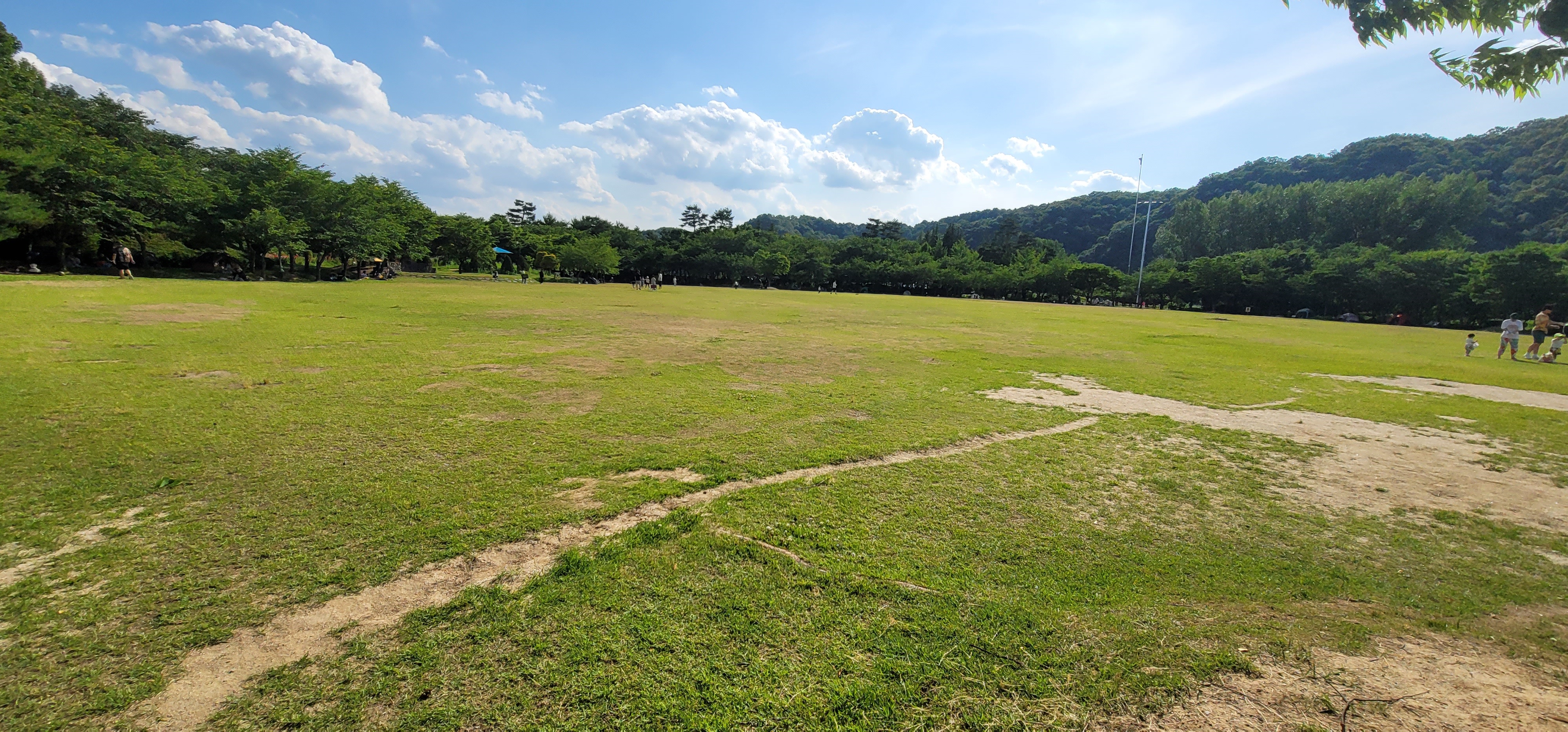 산책로도 잘 되어있으며 잔디밭이 넓어서 공놀이 하거나 배드민턴 치는